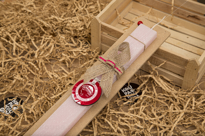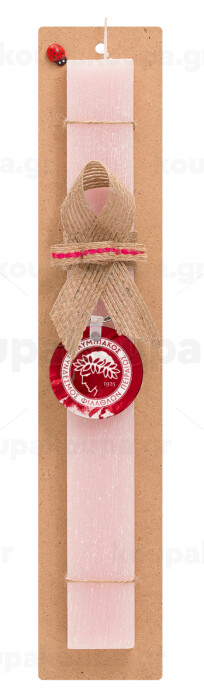 Olympiacos F.C., Easter Set, wooden keychain & scented flat Easter candle (30cm) (PINK)