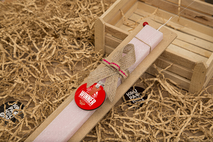 Europa Conference League WINNER, Easter Set, wooden keychain & scented flat Easter candle (30cm) (PINK)