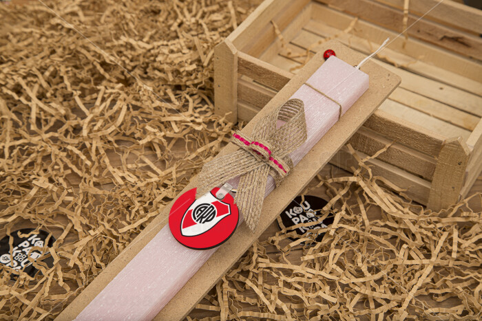 River Plate, Easter Set, wooden keychain & scented flat Easter candle (30cm) (PINK)