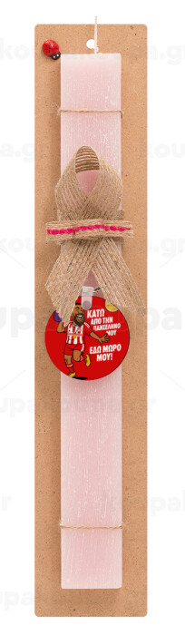Ροντινέι, "ΚΑΤΩ ΑΠΟ ΤΗΝ ΠΑΝΣΕΛΗΝΟ ΜΟΥ!", Easter Set, wooden keychain & scented flat Easter candle (30cm) (PINK)