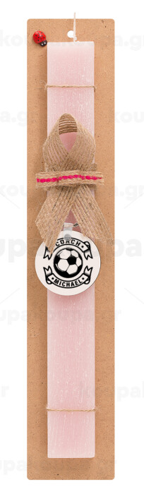 Soccer coach, Easter Set, wooden keychain & scented flat Easter candle (30cm) (PINK)