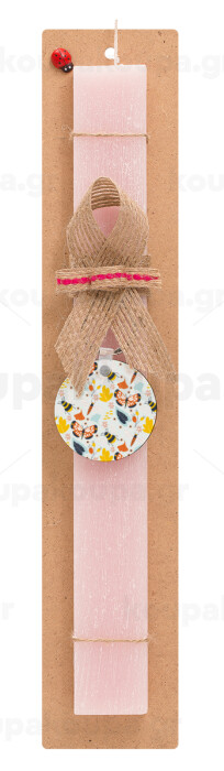 Πεταλούδες, Easter Set, wooden keychain & scented flat Easter candle (30cm) (PINK)