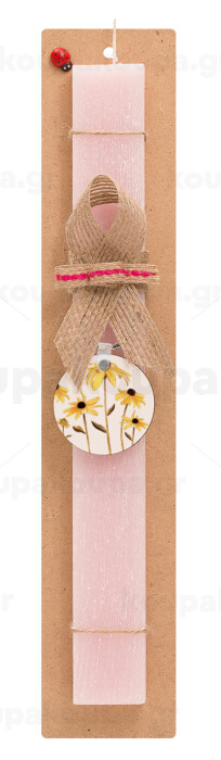 Daisies flower, Easter Set, wooden keychain & scented flat Easter candle (30cm) (PINK)
