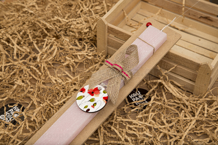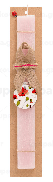 Red poppy flowers papaver, Easter Set, wooden keychain & scented flat Easter candle (30cm) (PINK)