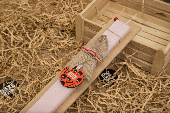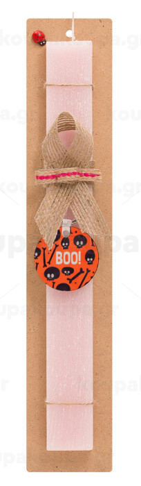 Halloween boo, Easter Set, wooden keychain & scented flat Easter candle (30cm) (PINK)