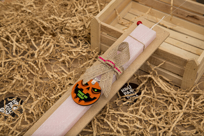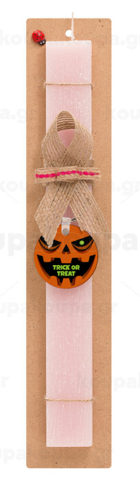 Halloween trick or treat Pumpkins, Easter Set, wooden keychain & scented flat Easter candle (30cm) (PINK)