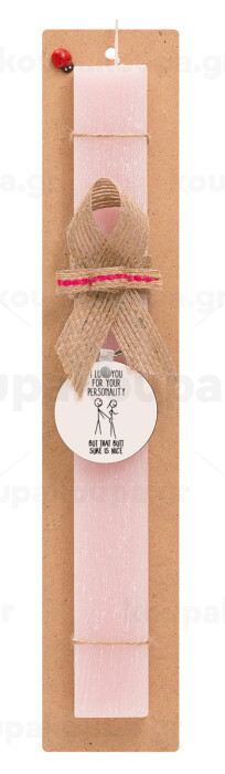 I Love you for your personality, Easter Set, wooden keychain & scented flat Easter candle (30cm) (PINK)