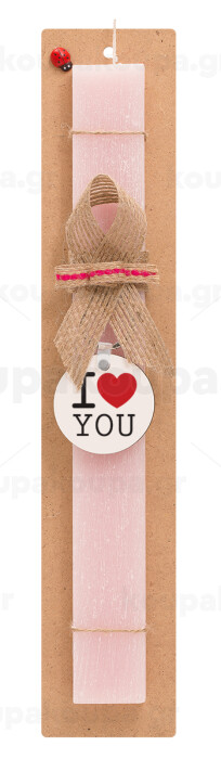 I Love you classic, Easter Set, wooden keychain & scented flat Easter candle (30cm) (PINK)