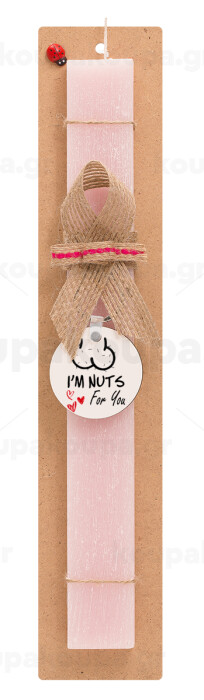 I'm Nuts for you, Easter Set, wooden keychain & scented flat Easter candle (30cm) (PINK)