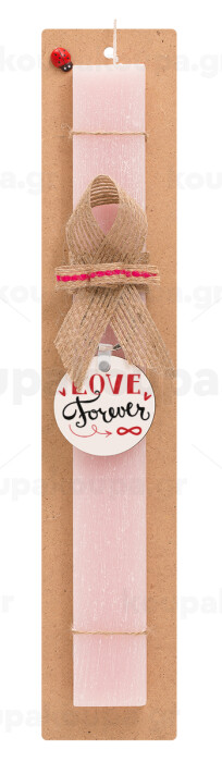 Love forever ∞, Easter Set, wooden keychain & scented flat Easter candle (30cm) (PINK)