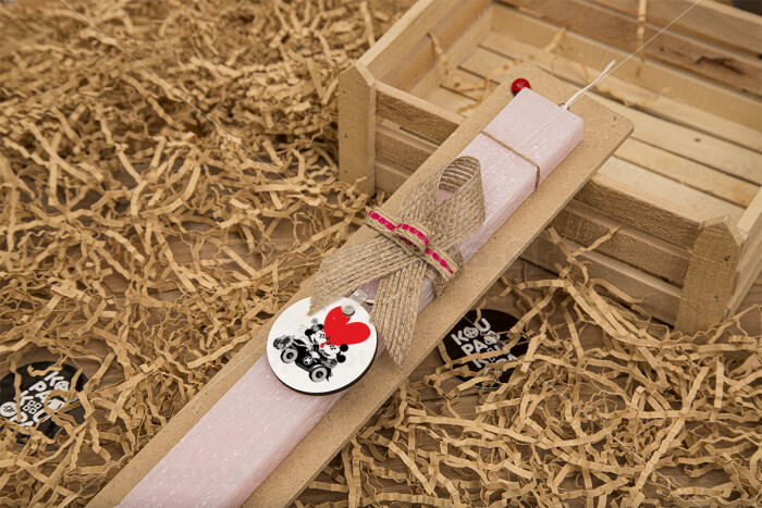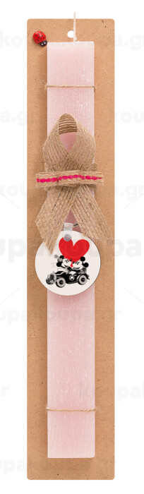 Mickey & Minnie love car, Easter Set, wooden keychain & scented flat Easter candle (30cm) (PINK)