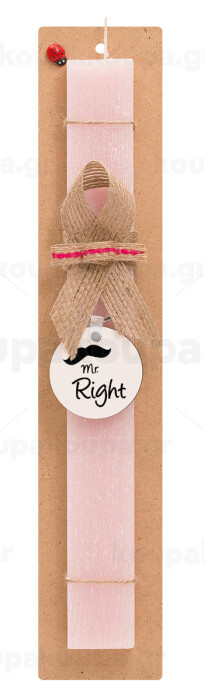 Mr right Mustache, Easter Set, wooden keychain & scented flat Easter candle (30cm) (PINK)