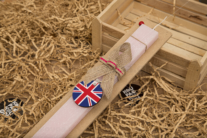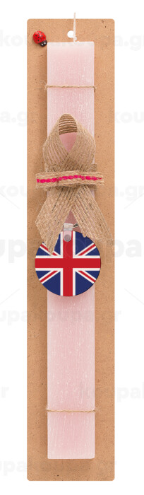 UK Flag, Easter Set, wooden keychain & scented flat Easter candle (30cm) (PINK)
