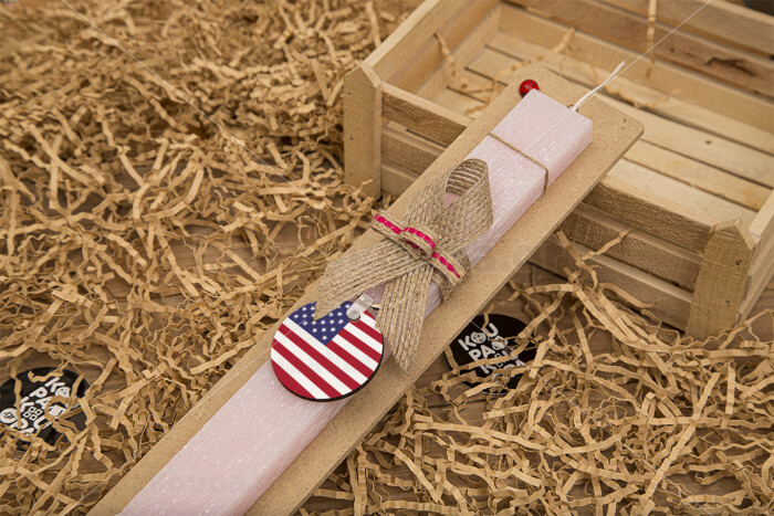 USA Flag, Easter Set, wooden keychain & scented flat Easter candle (30cm) (PINK)