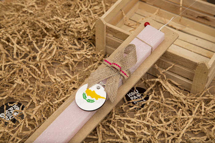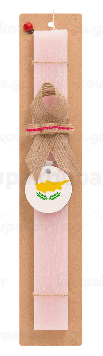 Cyprus flag, Easter Set, wooden keychain & scented flat Easter candle (30cm) (PINK)