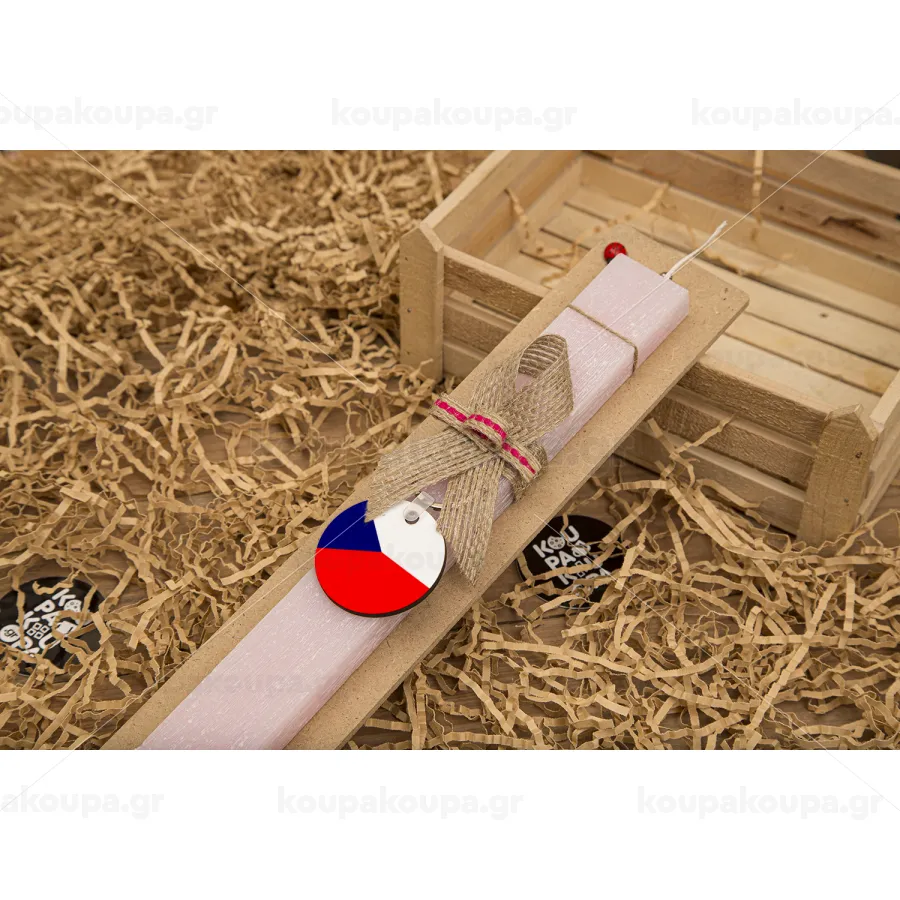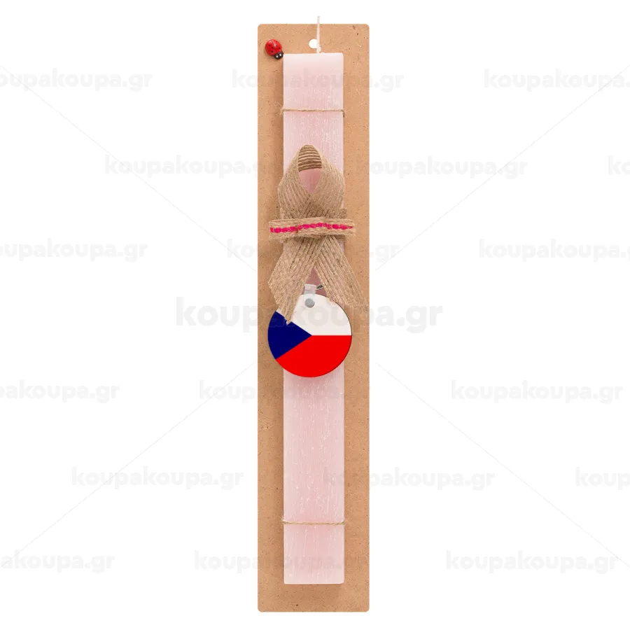 Czechia flag, Easter Set, wooden keychain & scented flat Easter candle (30cm) (PINK)