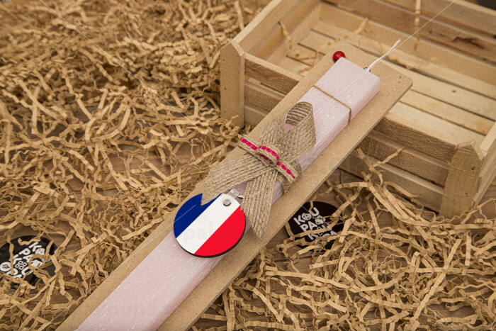 France flag, Easter Set, wooden keychain & scented flat Easter candle (30cm) (PINK)