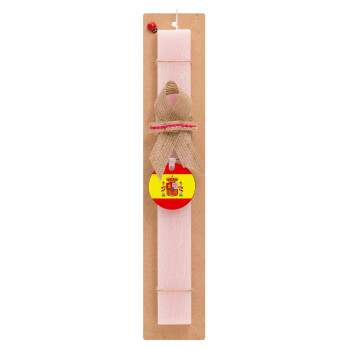 Spain flag, Easter Set, wooden keychain & scented flat Easter candle (30cm) (PINK)