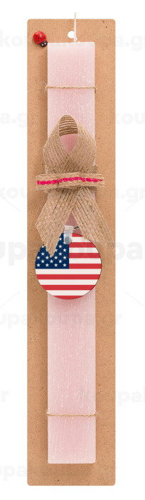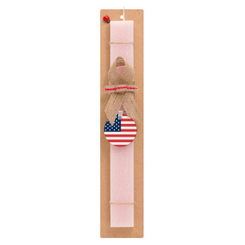 USA flag, Easter Set, wooden keychain & scented flat Easter candle (30cm) (PINK)
