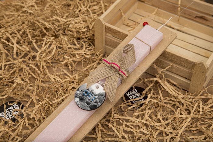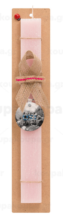 28η οκτωβρίου 1940, Easter Set, wooden keychain & scented flat Easter candle (30cm) (PINK)
