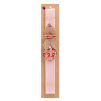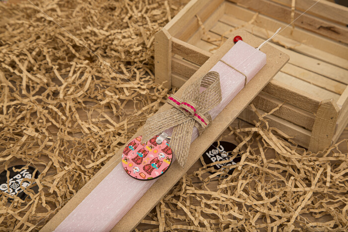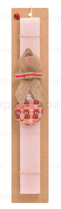 Cats and Fishes, Easter Set, wooden keychain & scented flat Easter candle (30cm) (PINK)