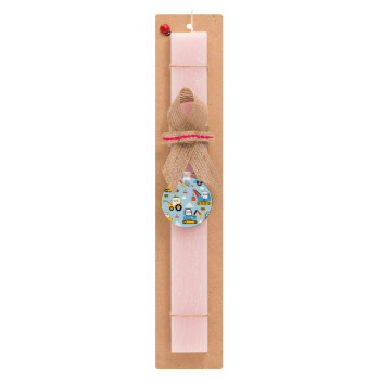 Hand drawing building truck, Easter Set, wooden keychain & scented flat Easter candle (30cm) (PINK)