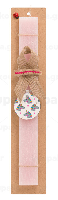Unicorn, Easter Set, wooden keychain & scented flat Easter candle (30cm) (PINK)