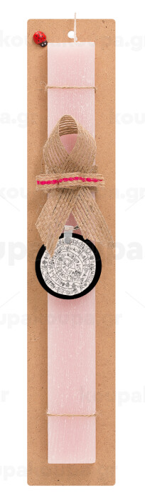 Δίσκος Φαιστού, Easter Set, wooden keychain & scented flat Easter candle (30cm) (PINK)