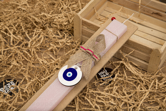 Χάντρα γαλαζιά, Easter Set, wooden keychain & scented flat Easter candle (30cm) (PINK)