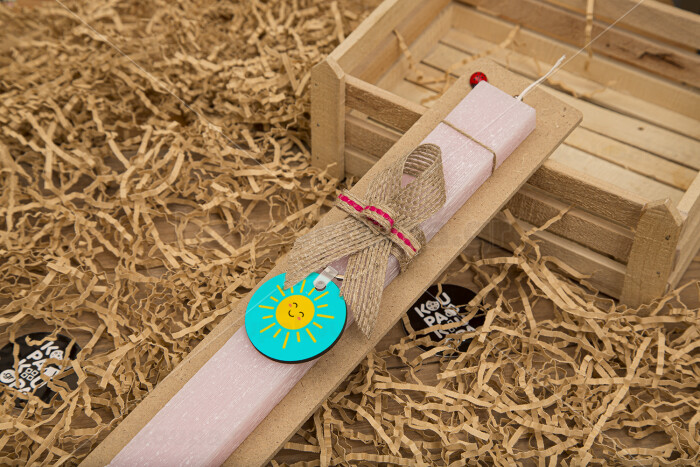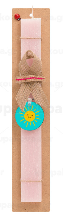 Happy sun, Easter Set, wooden keychain & scented flat Easter candle (30cm) (PINK)