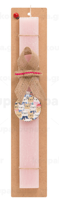 Σκύλοι, Easter Set, wooden keychain & scented flat Easter candle (30cm) (PINK)