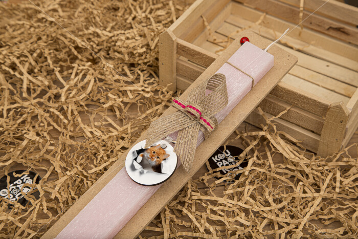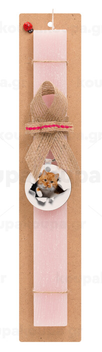 Cat cracked, Easter Set, wooden keychain & scented flat Easter candle (30cm) (PINK)