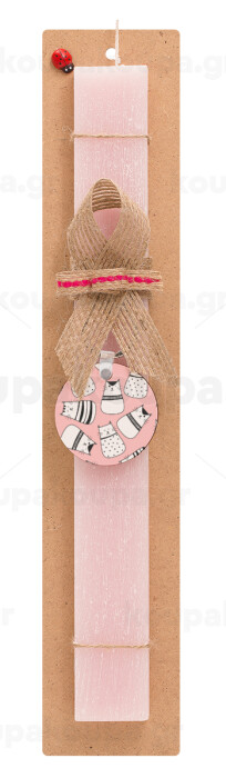 Cute cats, Easter Set, wooden keychain & scented flat Easter candle (30cm) (PINK)