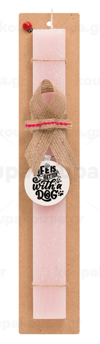 Life is better with a DOG, Easter Set, wooden keychain & scented flat Easter candle (30cm) (PINK)
