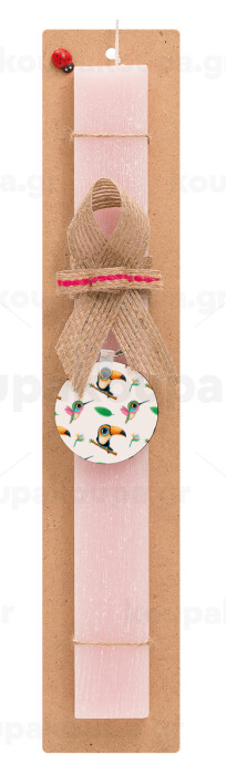 Toucan, Easter Set, wooden keychain & scented flat Easter candle (30cm) (PINK)