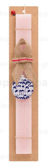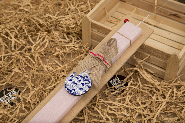 Άνθρωποι, Easter Set, wooden keychain & scented flat Easter candle (30cm) (PINK)