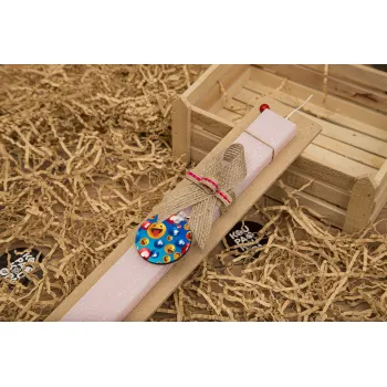 3D Emoji Collection, Easter Set, wooden keychain & scented flat Easter candle (30cm) (PINK)