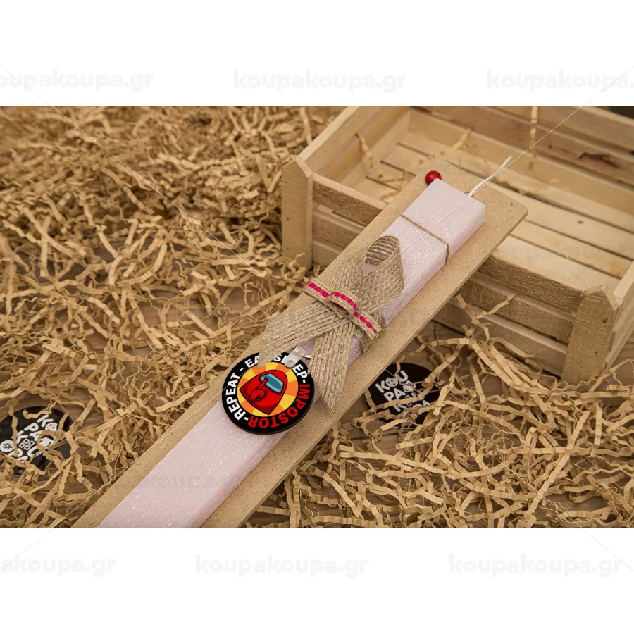 Among US Eat Sleep Repeat Impostor, Easter Set, wooden keychain & scented flat Easter candle (30cm) (PINK)