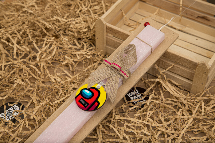 Among US, Easter Set, wooden keychain & scented flat Easter candle (30cm) (PINK)