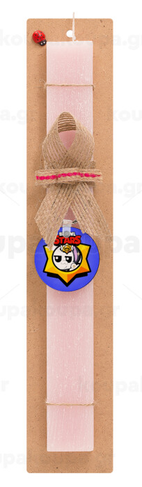 Brawl Stars Kit, Easter Set, wooden keychain & scented flat Easter candle (30cm) (PINK)