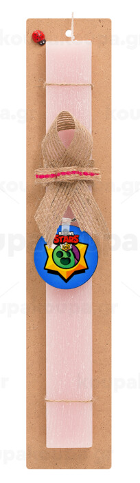 Brawl Stars Spike, Easter Set, wooden keychain & scented flat Easter candle (30cm) (PINK)