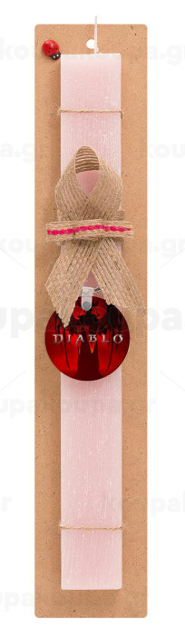 Diablo iv, Easter Set, wooden keychain & scented flat Easter candle (30cm) (PINK)