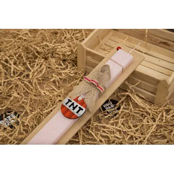 Minecraft TNT, Easter Set, wooden keychain & scented flat Easter candle (30cm) (PINK)