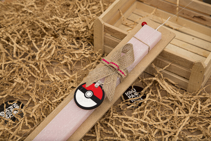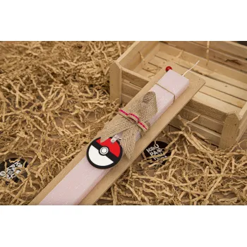 Pokemon ball, Easter Set, wooden keychain & scented flat Easter candle (30cm) (PINK)