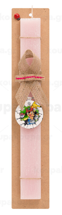 Pokemon brick, Easter Set, wooden keychain & scented flat Easter candle (30cm) (PINK)