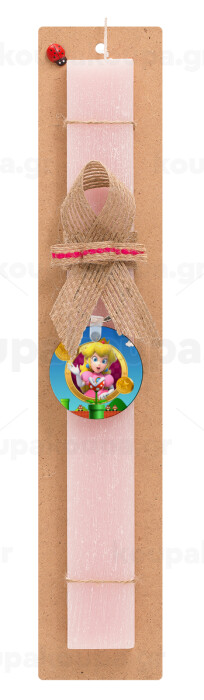 Princess Peach Toadstool, Easter Set, wooden keychain & scented flat Easter candle (30cm) (PINK)