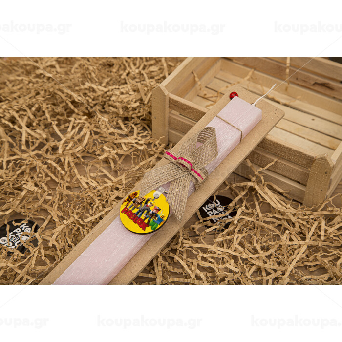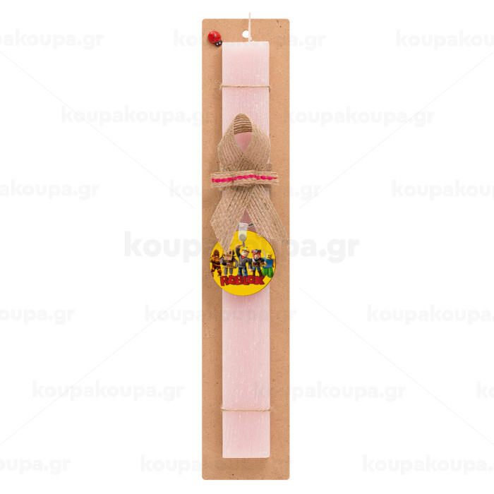 Roblox squad, Easter Set, wooden keychain & scented flat Easter candle (30cm) (PINK)
