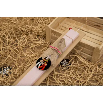 Street fighter, Easter Set, wooden keychain & scented flat Easter candle (30cm) (PINK)