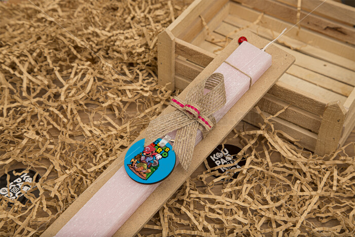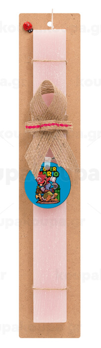 Super mario Jump, Easter Set, wooden keychain & scented flat Easter candle (30cm) (PINK)