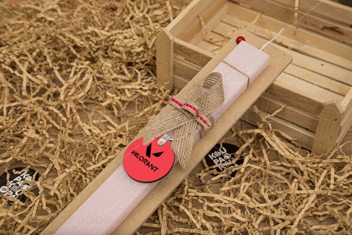Valorant, Easter Set, wooden keychain & scented flat Easter candle (30cm) (PINK)